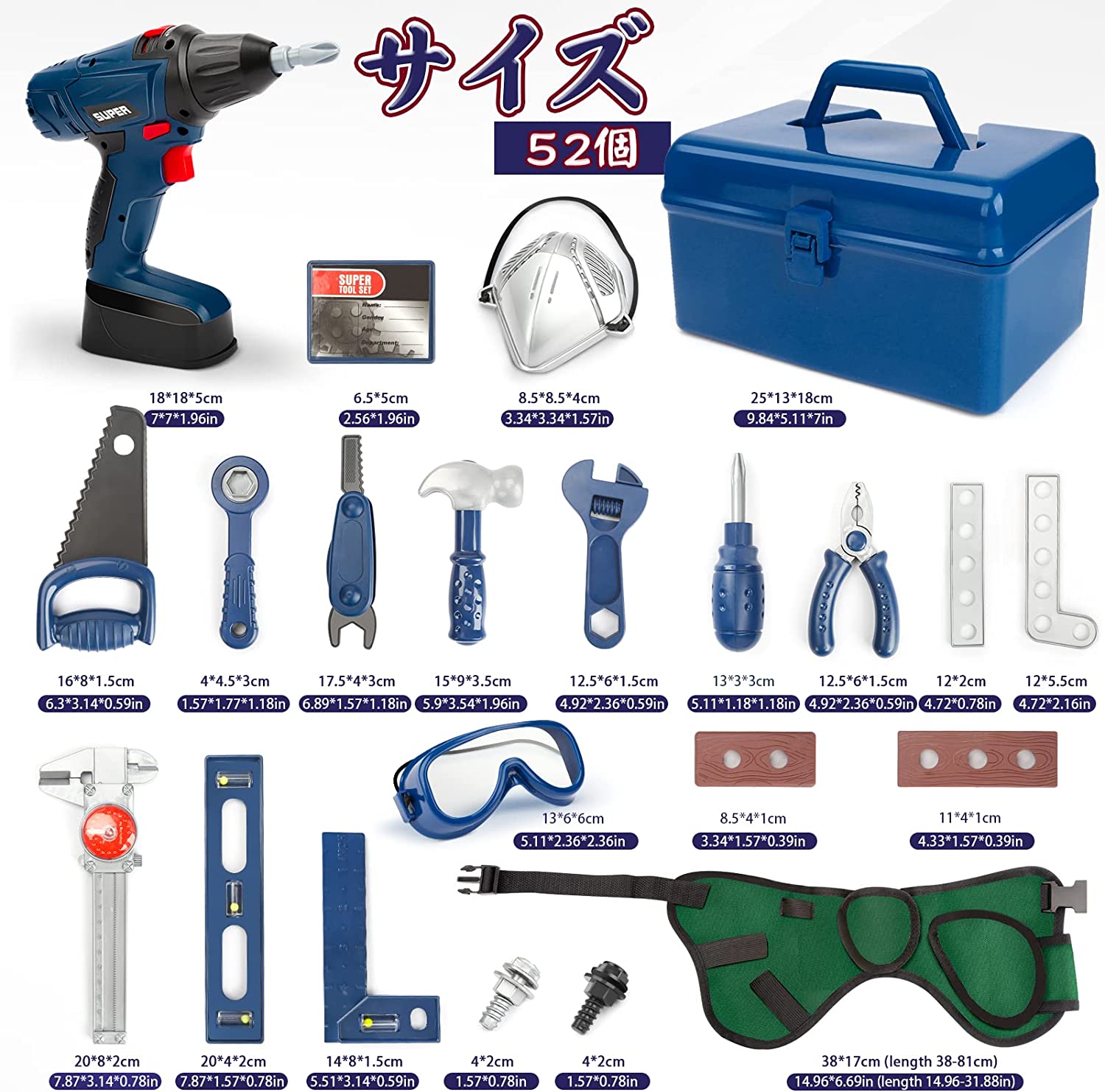 【組み立て おもちゃ には以下が含まれます】ツールボックス、電子ドリル、ツールベルト、ドライバー、ハンマー、安全ゴーグル、ワークカード、6つのプレイボード、12のボルト、12のナットなどが含まれます。これはビルド&プレイツールキットの完全なツールキットです。重量:0.905kg