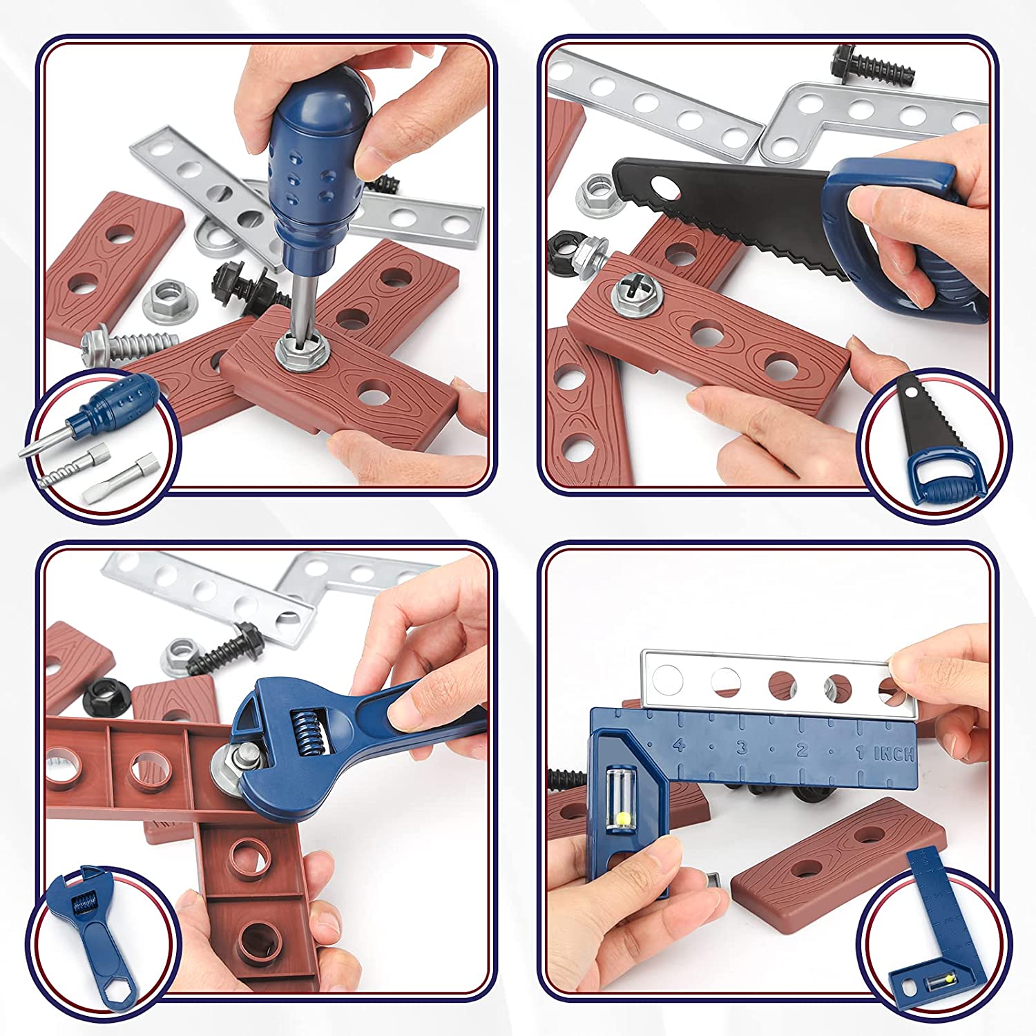 【プレミアム品質の工具 おもちゃ】環境に優しく、安全で耐久性のあるプラスチック素材でできており、安定したデザインで、鋭利ではありません。ツールボックスを使用すると、たちはツールのおもちゃを簡単に整理して、混乱することなくどこにでも持ち運ぶことができます。