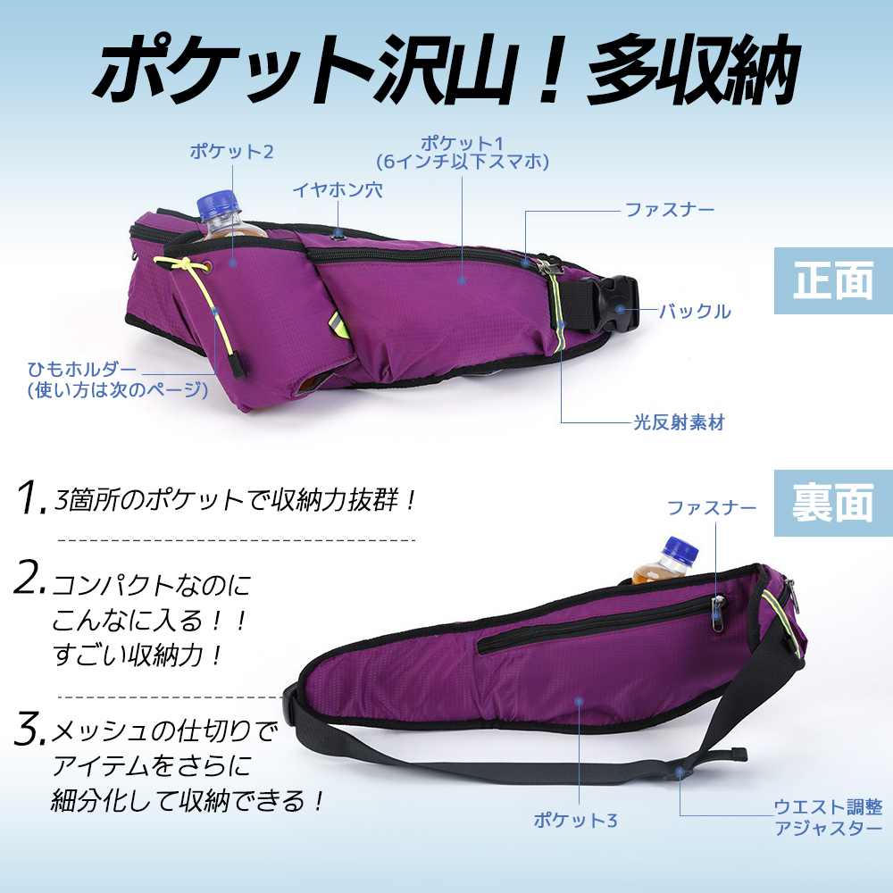 ランニングポーチ ウエストポーチ 揺れない ランニングバッグ ジョギングポーチ 防水 ボトルポーチ ペットボトル メンズ レディース アウトドア 旅行 スマホ iPhone ボディバッグ スポーツ ウォーキング マラソン 軽量
