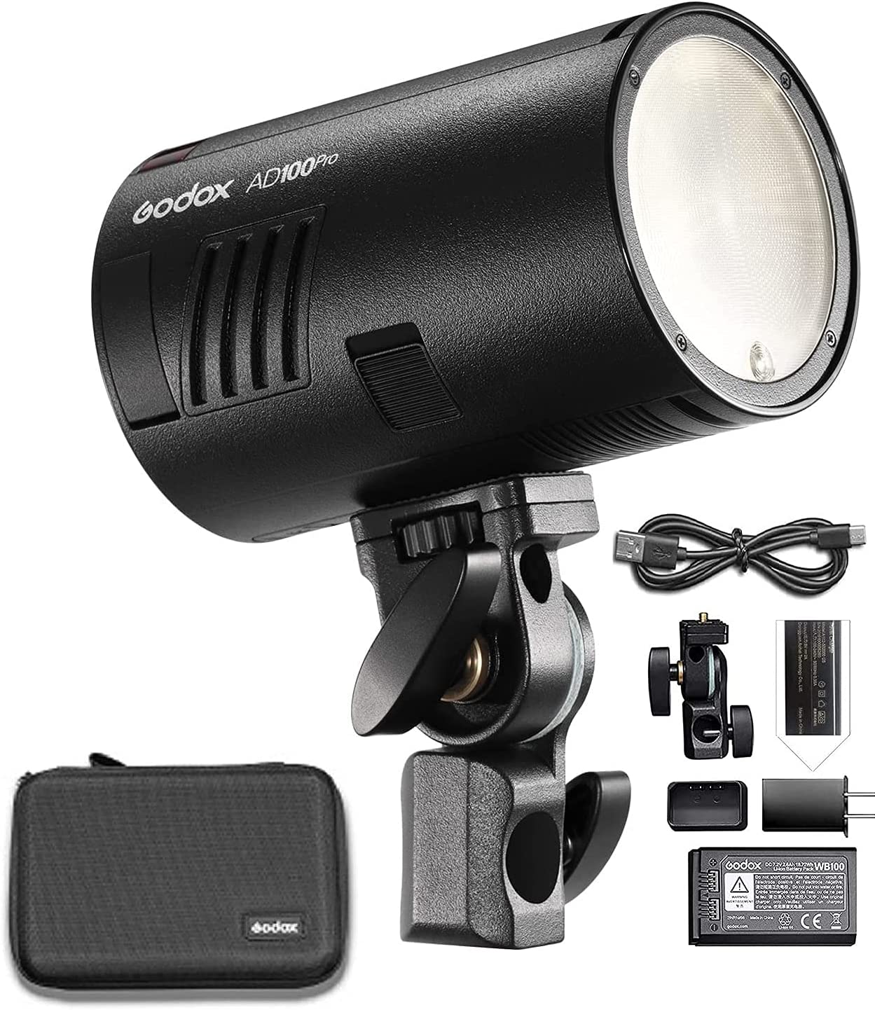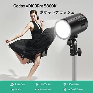 AD100Pro 100Ws フラッシュストロボ 5800±200K ラウンドヘッドモノライト 2.4G TTL 1/8000 HSS 高速同期 0.01〜1.5リサイクル 360フルパワーフラッシュ コンパクト(ad100pro) [並行輸入品]