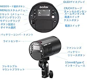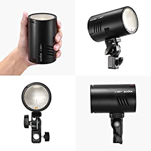 【Godox ADシリーズで最もポータブルフラッシュライト] スタジオフラッシュライトは、5800K色温度ライトとクリアOLEDスクリーンを備え、12 * 7.6 * 7.6cmのサイズで、350cc缶と同じ大きさ,手持ちとても便利です。屋内および屋外の便利なポートレートおよびビデオ照明に真にポータブルになります。
