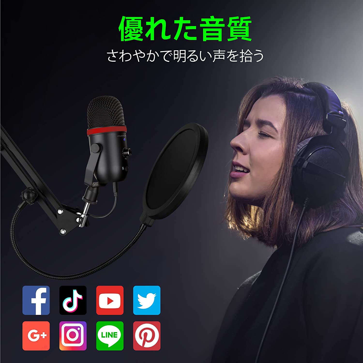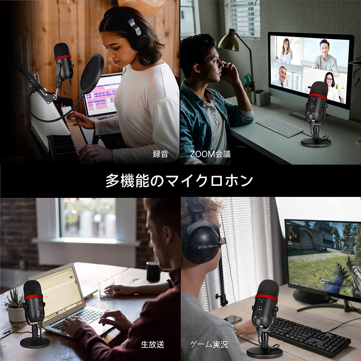 ????【ノイズ軽減&ミュート機能】コンデンサーマイクの本ュートボタン(赤ライトはミュート状態で、青ライトは録音状態です )ワンタッチミュート機能はとても便利です。また、ミュートボタンを3秒間長押しし、緑色に点灯してインテリジェントなノイズリダクションを切り替えます、周囲の環境音を抑えながら声をクリアに録音します。