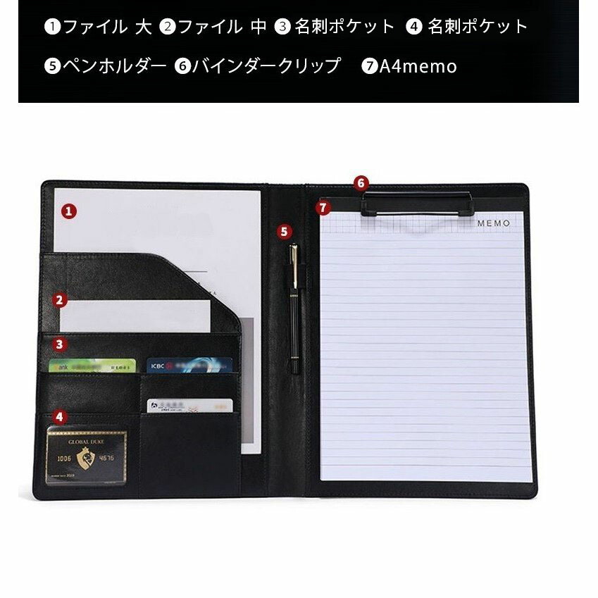 バインダー A4 おしゃれ クリップボード 革 高級感 クリップ ファイル 二つ折り 多機能 ペンホルダー バインダーケース クリップファイル ポケット付き オフィス 仕事用