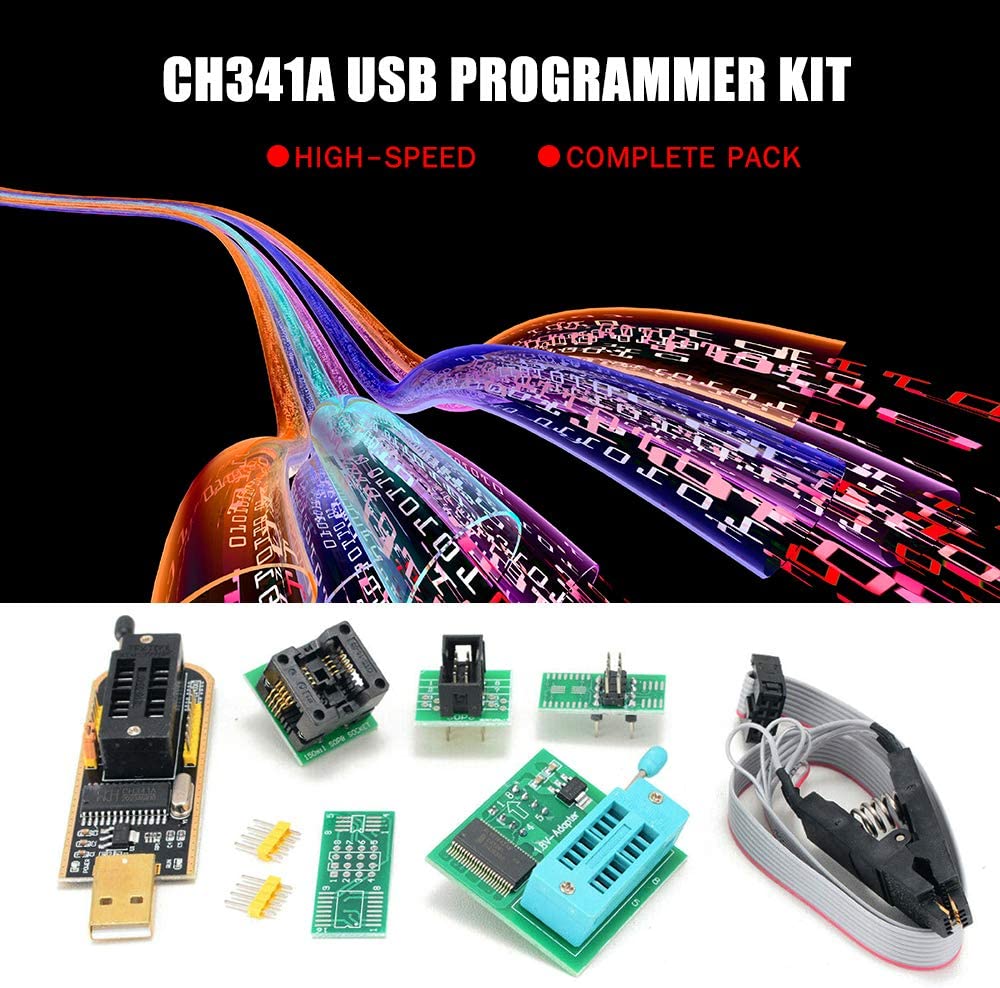 CH341A USBプログラマーキット、SOP8クリップEEPROMバーナーBIOSフラッシャーSPIフラッシュプログラマーキット、1.8Vアダプター、24/25シリーズ用150mil SOP8ソケット
