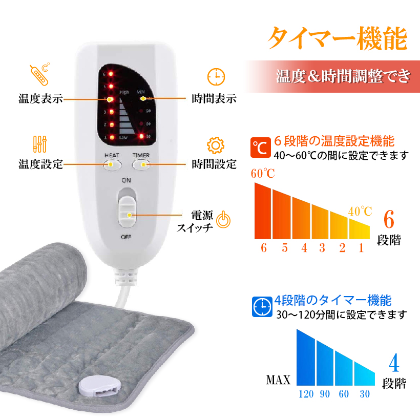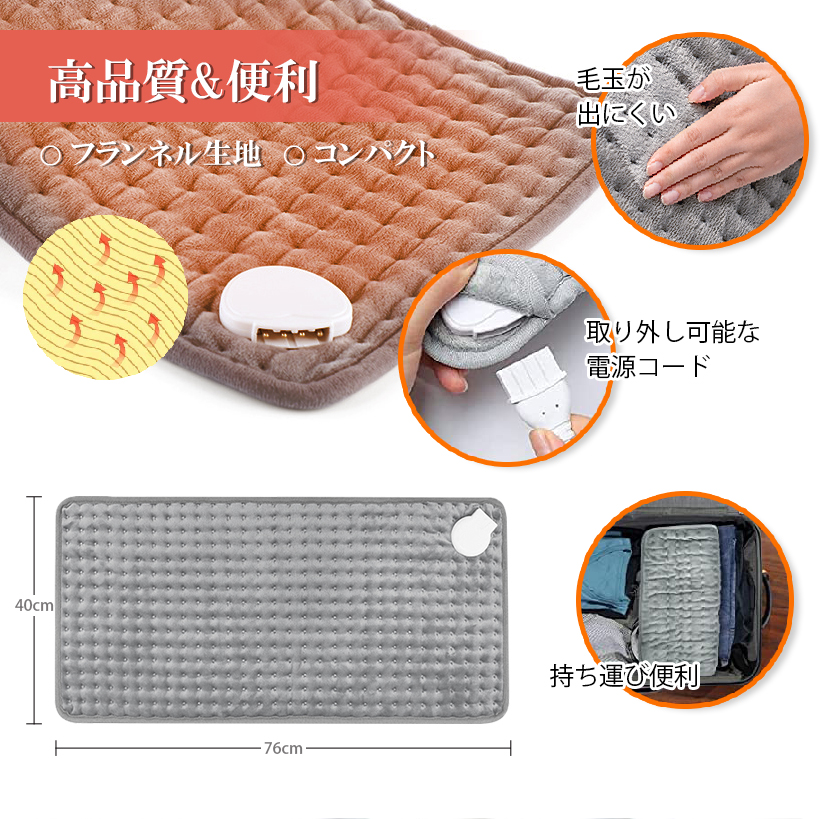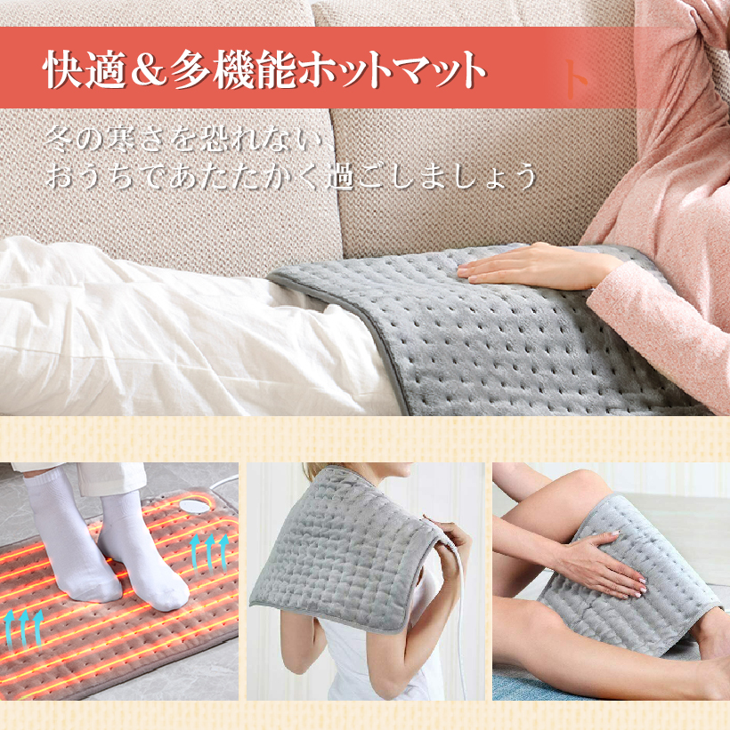 ホットマット ホットカーペット 76×40cm 温度 切替 調節 自動 タイマー 手洗いOK オフィス 洗える 足元用 在宅勤務 冬家電 防寒 アウトドア