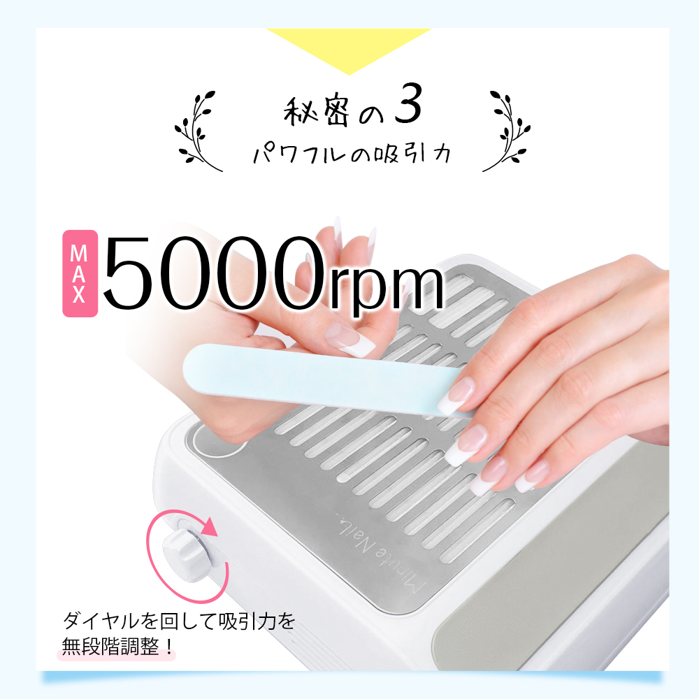 集塵機 minute plus ネイルダストクリーナー セルフ ネイルオフ 静音設計 強力吸引 無段階調整 フィルター付き ブラシ立て